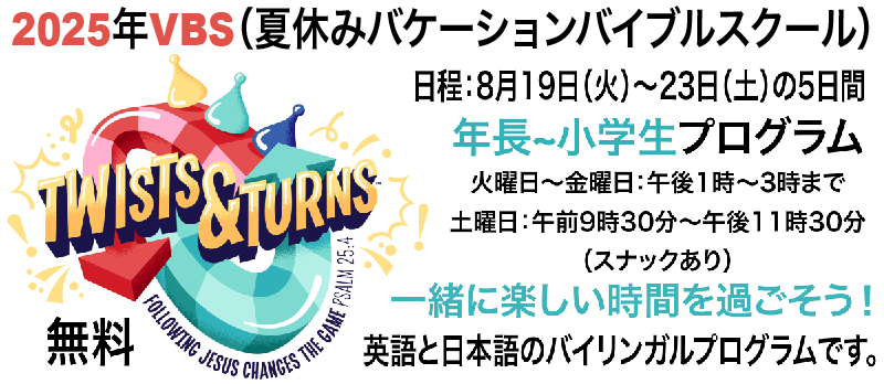 2025年6月28日 by Joseph Totsis · Published 2025年6月28日 · Last modified 2025年8月19日 2025年VBS このフォームに入力するには、ブラウザーで JavaScript を有効にしてください。連絡先メールアドレス *小学生:お子様の名前(ローマ字) *性別男の子女の子参加予定日全5日間火曜日水曜日木曜日金曜日土曜日 ご意見やご質問はございますか? 参加予定日 性別 ご意見やご質問はございますか?Submit